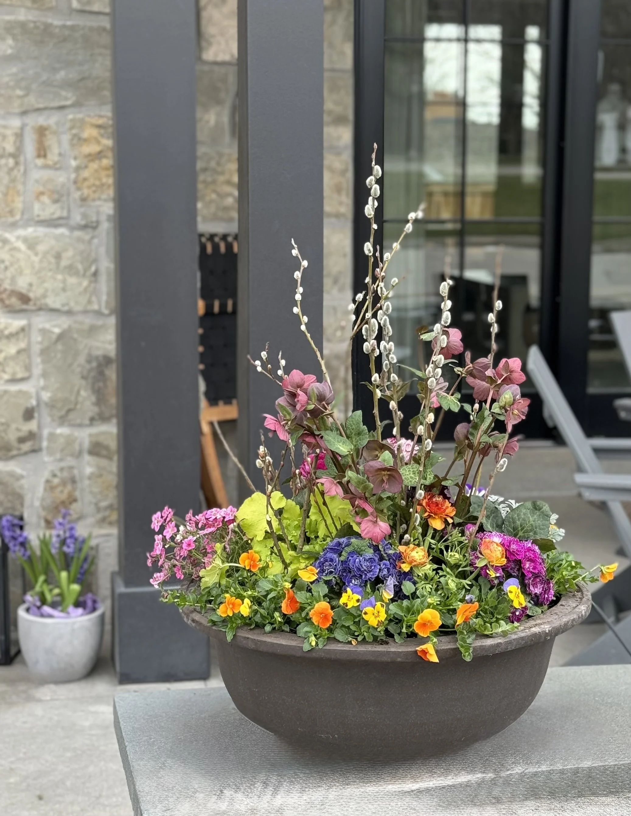 If your containers are easily portable, you may bring them to any of our stores for assistance. For larger containers, our experienced crew can come to your location. When planting on-site, our team will remove old or dead plants, refresh the soil (if needed), add beautiful new plants, and water the planters thoroughly.