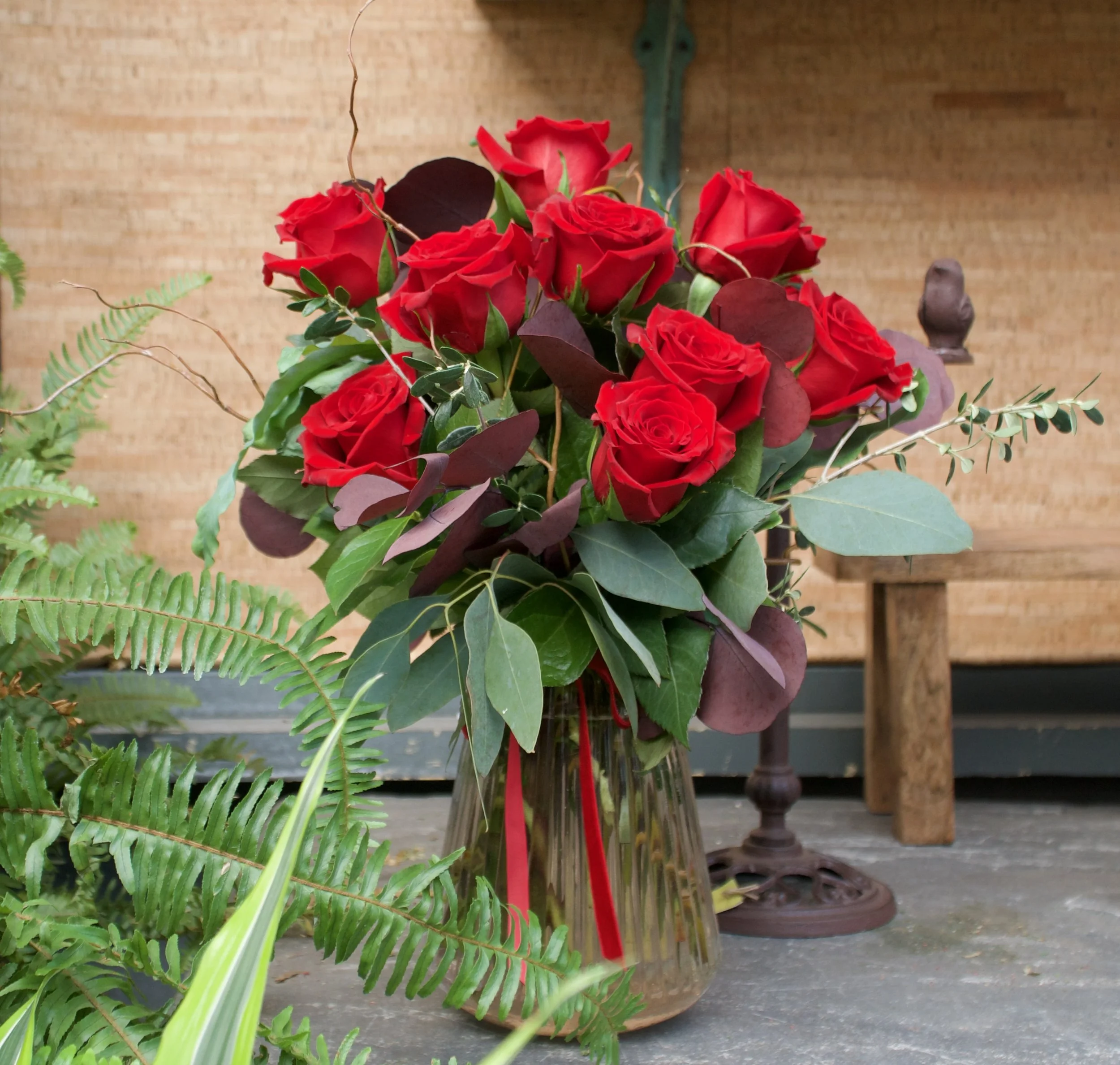 You have the option of having them elegantly wrapped in brown kraft paper or arranged in a glass vase.